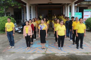 นางสาวนริศรา อุตอามาตย์ ปลัดเทศบาล พร้อมหัวหน้าส่วนราชการ พนักงานเทศบาล ลูกจ้างประจำ พนักงานจ้างเทศบาล พนักงานจ้างเหมาบริการ ดำเนินการจัดกิจกรรมเข้าแถวเคารพธงชาติ เพื่อเป็นการแสดงความจงรักภักดี ต่อชาติ ศาสนา พระมหากษัตริย์ ณ บริเวณเสาธงหน้าสำนักงานเทศบาลตำบลสำราญ